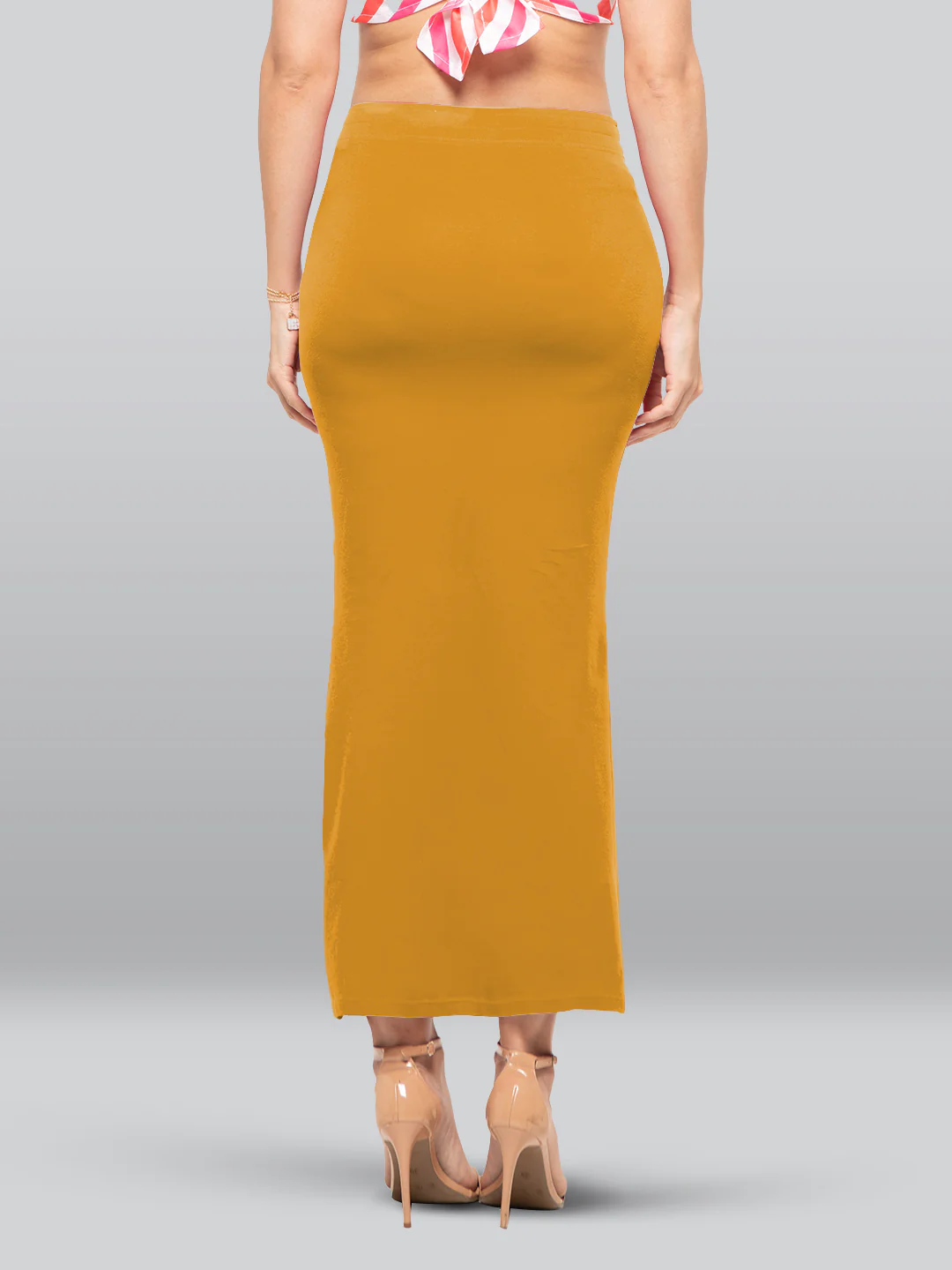A saree petticoat can do much more than just hold your drape in place. Take a look at the PantaDrill saree shaping petticoat, and you will know how. This saree shapewear offers low, targeted compression around your stomach and thighs to give you a smooth and even-toned look under any six-yard beauty. This shaping petticoat is crafted with polyamide spandex fabric that offers a soft feel and lightweight comfort for up to 12 hours. It features a strong elastic waistband that holds the saree weight and also has side slits for easy movement. Slip into this mermaid fit saree shaping petticoat, and show off well-defined curves under your favourite saree.
